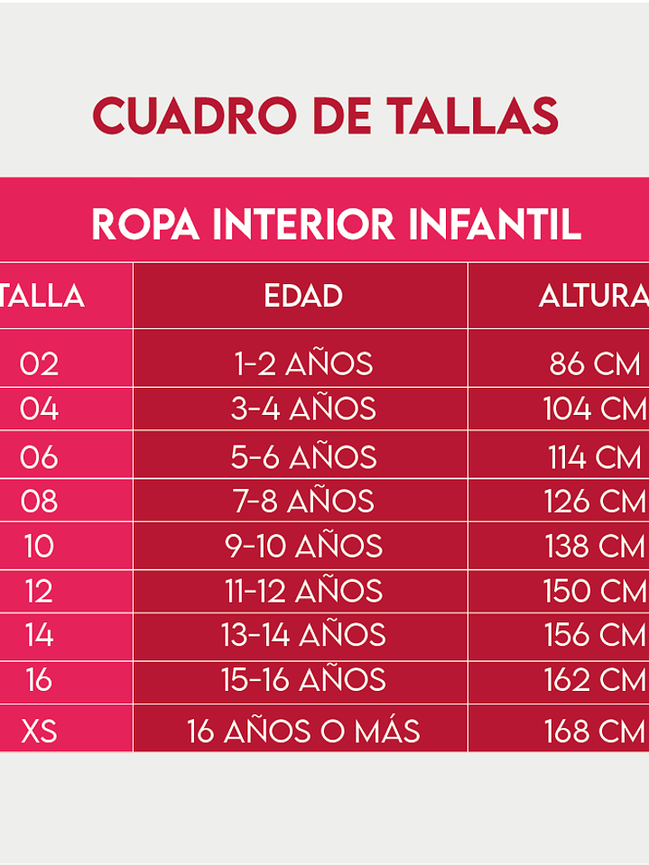 -Revisa la tabla de medidas de cada producto haciendo click en el enlace. Escríbenos al 956 953 672 para ayudarte.