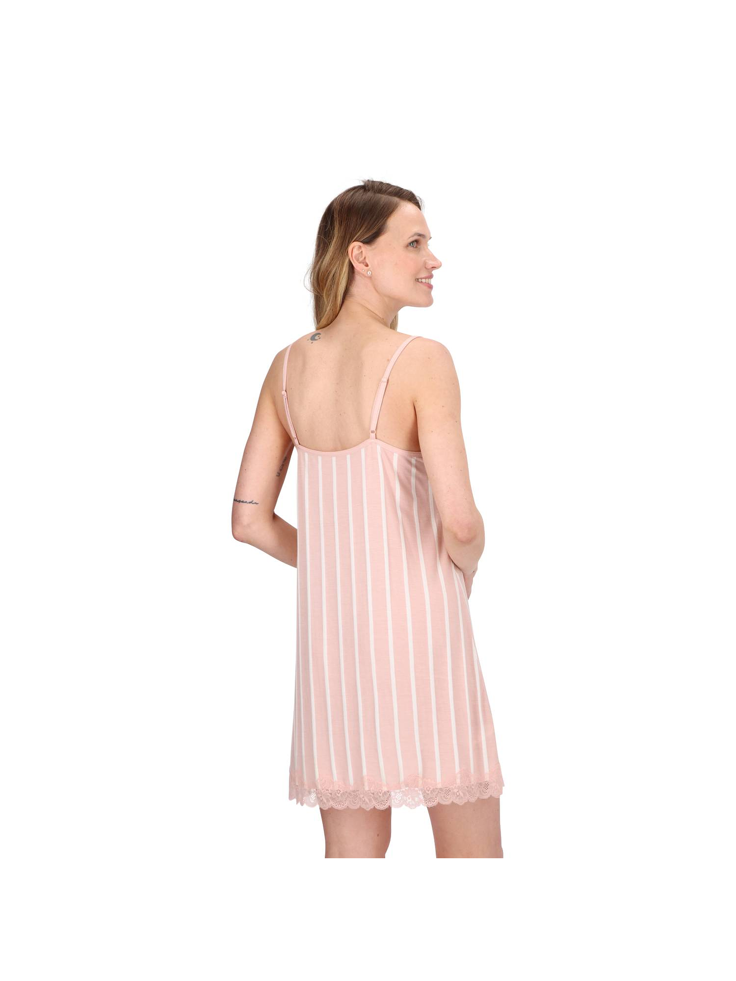 - Detalle de encaje en escote y ruedo.