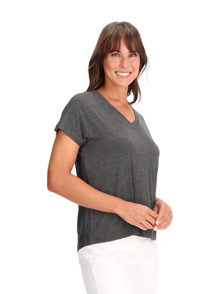 - Manga 3/4 y cuello en V.